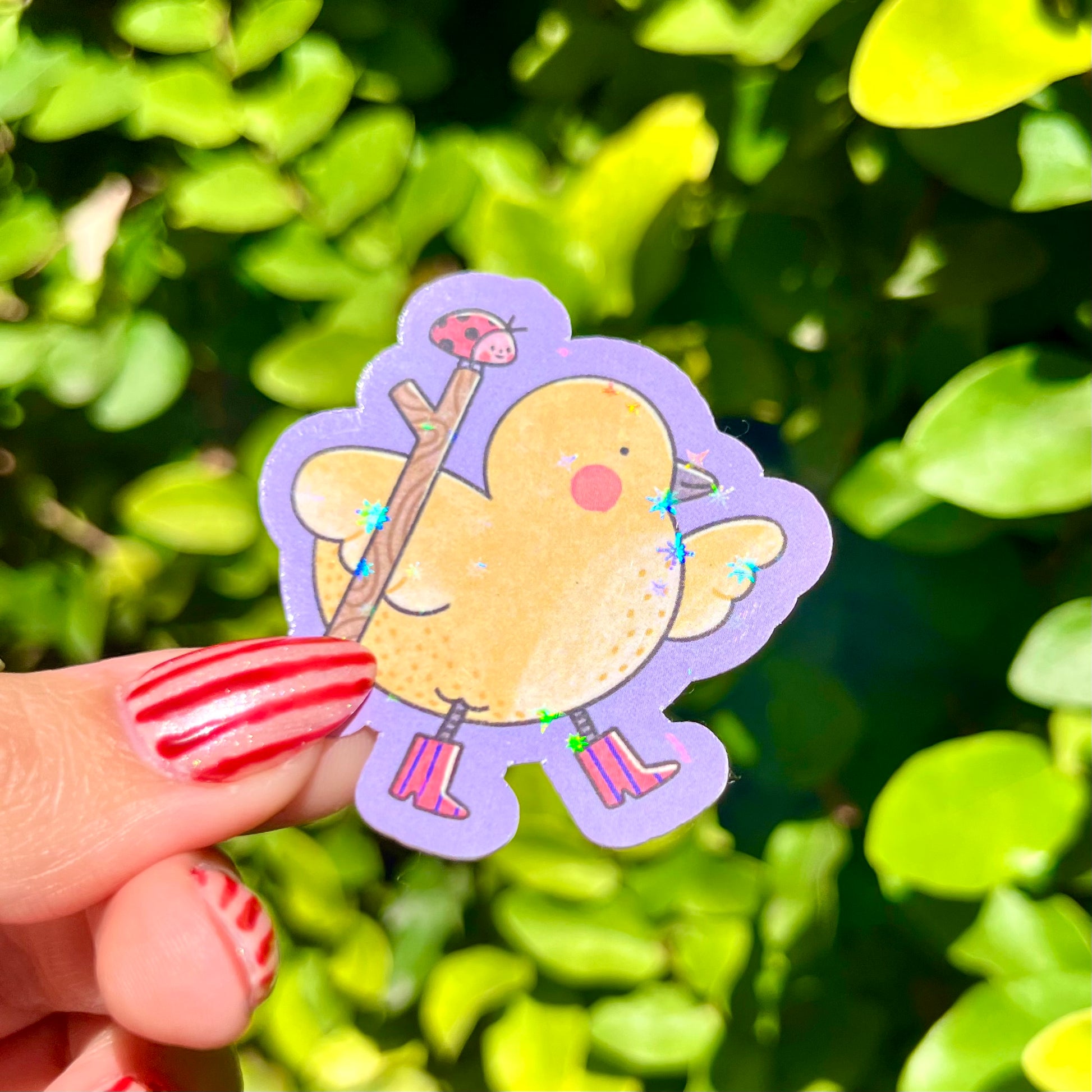 Este sticker individual de aproximadamente 5 x 5 cm está impreso en alta calidad y cubierto con un laminado holográfico de estrellas que hace que los colores brillen y cambien con la luz. Son súper resistentes, duraderos y perfectos para decorar lo que más quieras: tu libreta, laptop, celular, botella de agua y todas tus cosas favoritas.